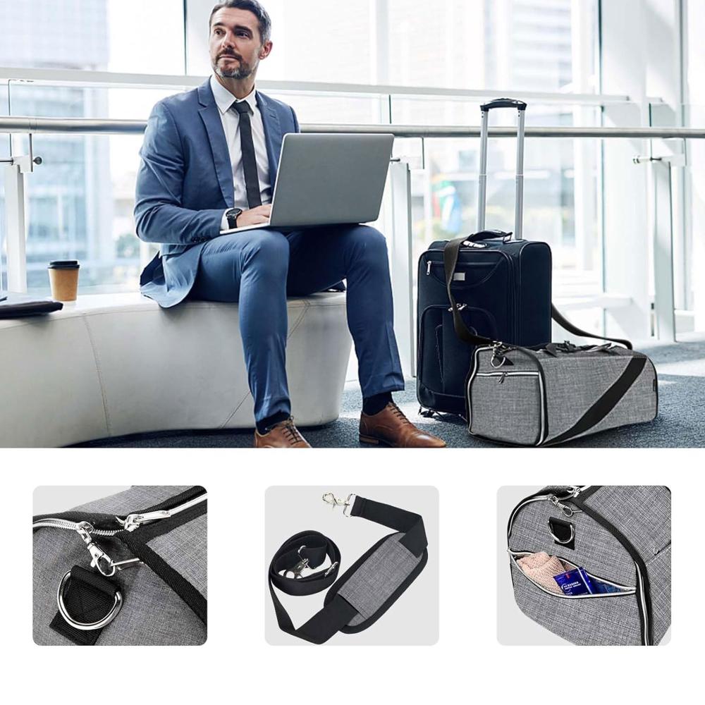 حقيبة تخزين ملابس قابلة للطي بذكاء، تجمع بين وظيفة حقيبة السفر العادية وحقيبة الملابس، ما يجعلها مثالية لرحلات العمل أو عطلات نهاية الأسبوع .